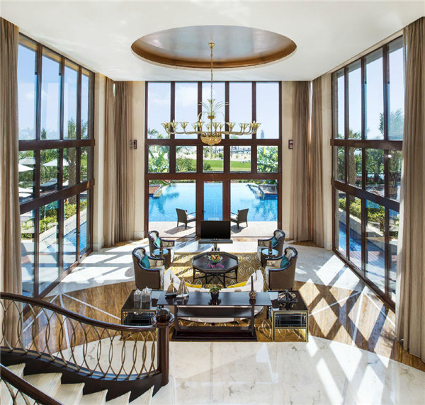 亚龙湾五号度假别墅酒店是由108栋独具热带浓郁巴厘岛风情的园林别墅和1栋会所组成。酒店与大海相临,与高尔夫球场互倚,是当前中国首家超大型至尊滨海度假别墅区。简洁的现代风格符合年轻人的喜好,舒适温馨的居住环境让长期工作的城市白领精英们可以自由的放松,有家一样的感觉。
