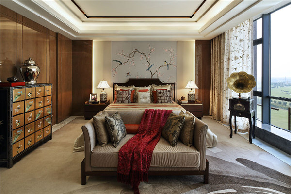 在设计中力求简洁大气,功能完备,以此来营造淡雅、高品位的时尚居家气氛。墙面也只是贴上一层浅咖啡色的花纹墙纸。窗帘布料均以浅咖啡色为主调,整个空间相对采用了更加精炼的形式和手法,以此凸显居家的精致细微。