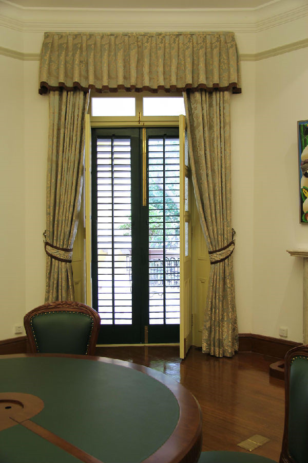 本俱乐部位于广州中西交融代表地的沙面,主要用于接待国际友人,召开国际性会议的场所。本案在尊重原有建筑的基础上对窗帘进行设计,表现出我国近代史与租界史的缩影,也符合不同空间使用的特质,保证在安装和使用时不破坏原有的建筑,更好的体现出中外交融的文化特质。